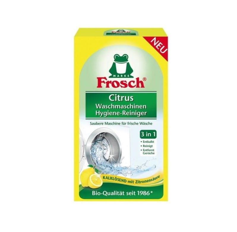 Oparty na składnikach naturalnych i biodegradowalnych profesjonalny preparat do kompleksowego czyszczenia i konserwacji pralek. Potrójna formuła usuwa pozostałości wapna i brudu z bębna pralki i prętów grzejnych, nieprzyjemne zapachy oraz chroni mechanizm i gumowe elementy. Zawartość naturalnego kwasu cytrynowego gwarantuje czystość i długotrwały zapach. Proszek działa już w temperaturze 40°C. Pomaga zachować sprawne i prawidłowe działanie pralki przez długi czas. Włóż zawartość opakowania (250 g) do pustego bębna pralki (bez dodatkowych detergentów). Uruchom pralkę w cyklu prania zasadniczego(bez wstępnego) temperatura co najmniej 40°C . Frosch to gwarancja skutecznego czyszczenia w zgodzie z naturą.