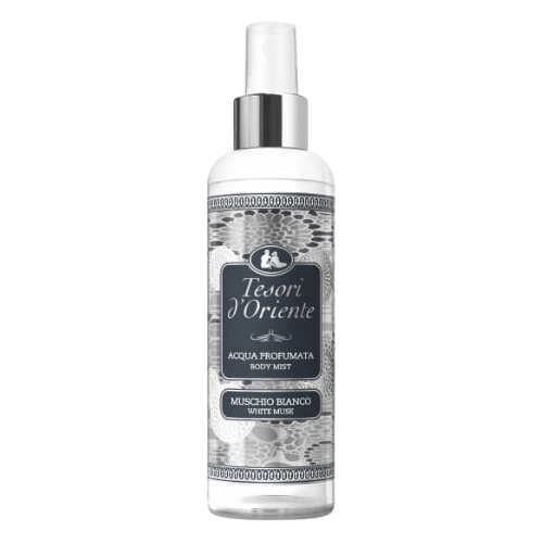 Tesori d’Oriente Muschio Bianco to elegancka mgiełka do ciała o subtelnym, pudrowym zapachu białego piżma. Lekka formuła odświeża skórę i otula ją delikatną wonią, która dodaje klasy i harmonii na cały dzień. Idealna do codziennego użytku – zarówno po kąpieli, jak i w ciągu dnia dla szybkiego odświeżenia.